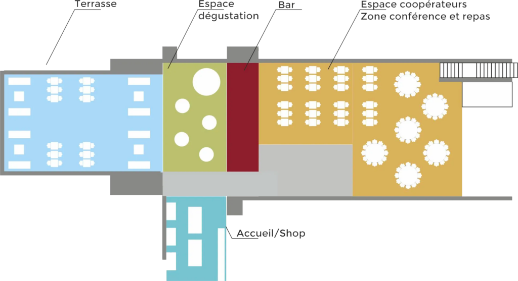 Nous pouvons y dresser 100 couverts. - L'espace bar et dégustation de 50 m² : Parfait pour vos pauses ou animations